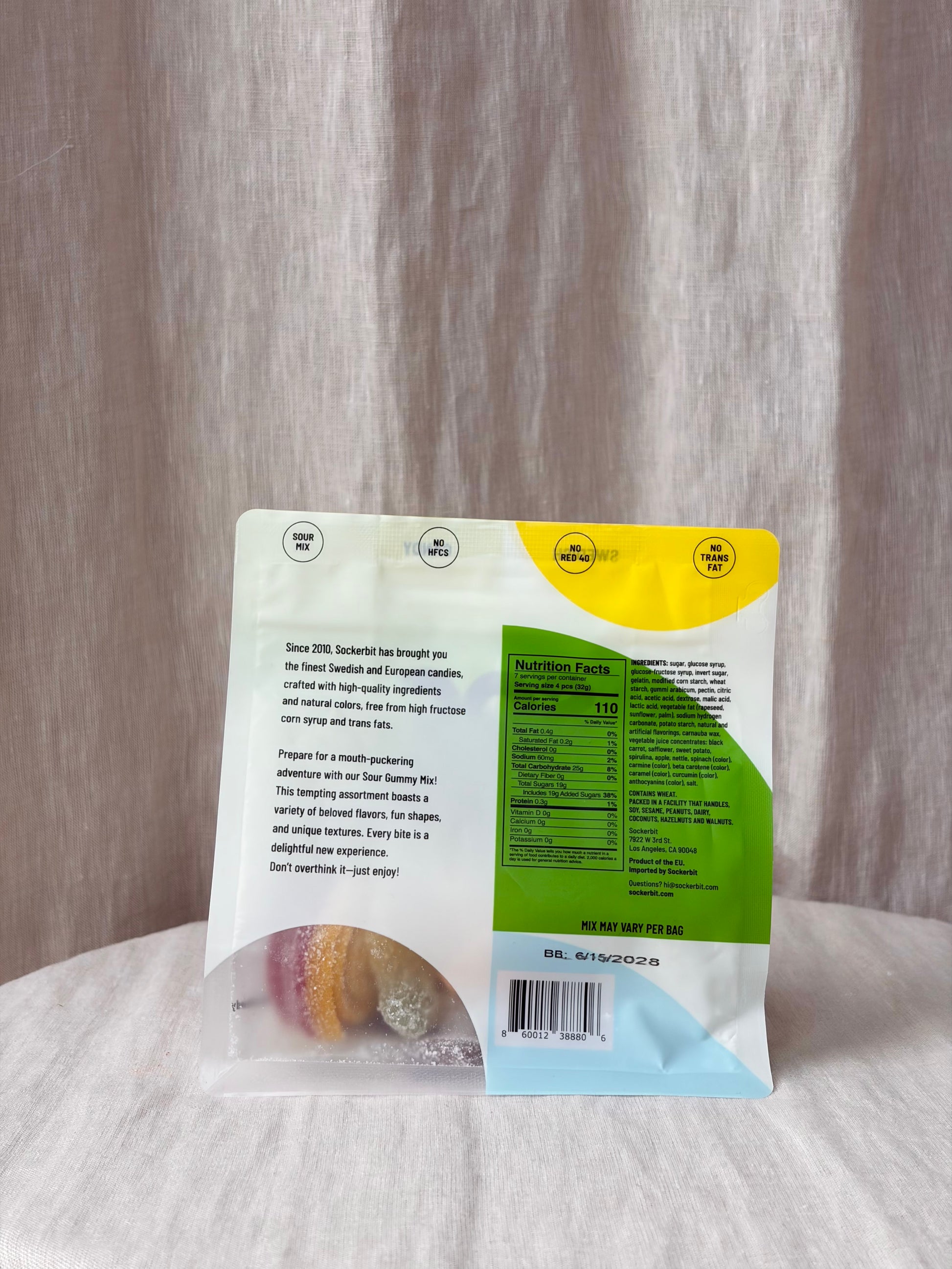 A refreshing mix of Sockerbit's sour candies packed in a resealable pouch bag.