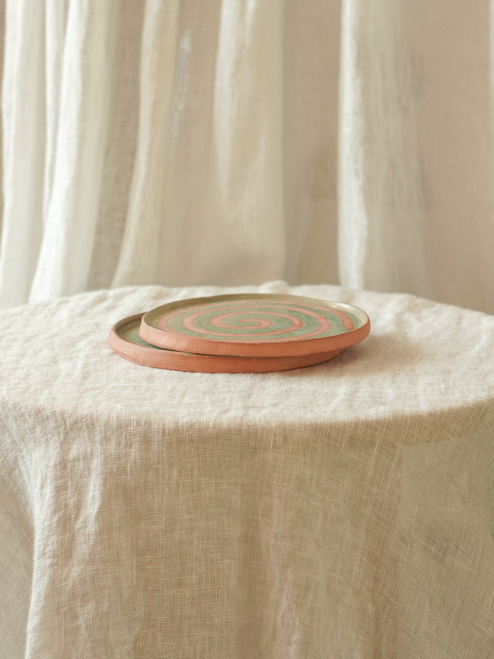 Imagine eating your dessert or side salad on this calming spiral plate. You are enjoying each bite as you allow your eyes to follow the spiraling glaze...the vibes are right.